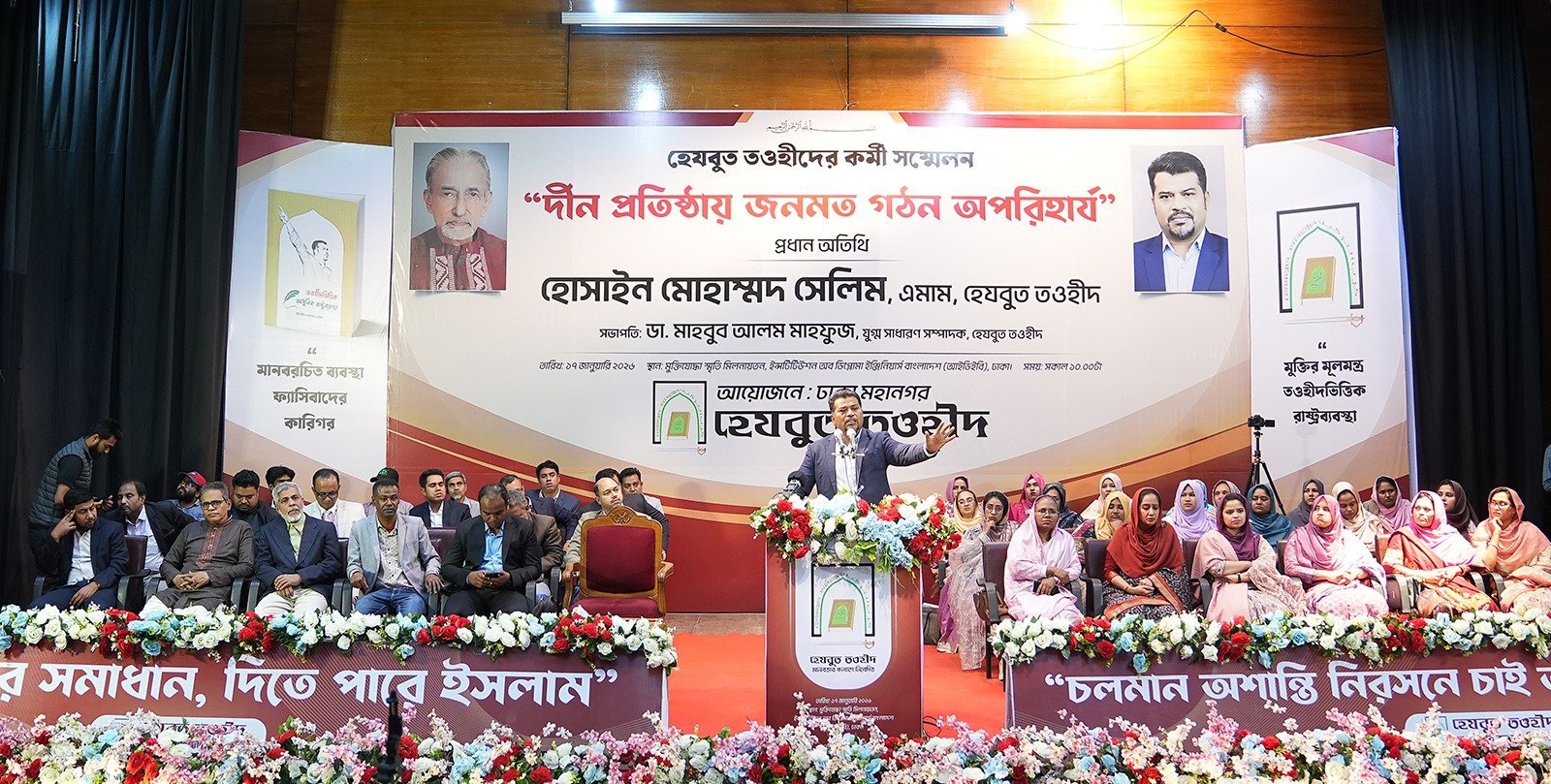 রাজধানীতে হেযবুত তওহীদের আয়োজনে ‘দীন প্রতিষ্ঠায় জনমত গঠন অপরিহার্য’ শীর্ষক এক বিশাল কর্মী সম্মেলন অনুষ্ঠিত হয়েছে। শনিবার (১৭ জানুয়ারি) ইনস্টিটিউশন অব ডিপ্লোমা ইঞ্জিনিয়ার্স বাংলাদেশ (আইডিইবি) ভবনের মুক্তিযোদ্ধা স্মৃতি মিলনায়তনে এই সম্মেলন অনুষ্ঠিত হয়। ঢাকা মহানগর হেযবুত তওহীদের আয়োজনে অনুষ্ঠিত এই সম্মেলনে প্রধান অতিথি হিসেবে উপস্থিত ছিলেন হেযবুত তওহীদের শীর্ষ নেতা এমাম হোসাইন মোহাম্মদ সেলিম।