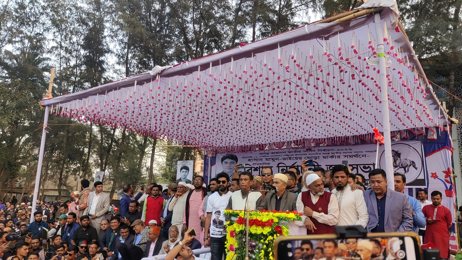 জনসভায় প্রধান অতিথির বক্তব্যে স্বতন্ত্র প্রার্থী হাসান মামুন বলেন, “হিন্দু-মুসলিম নির্বিশেষে, আওয়ামী লীগ-বিএনপি ও জামায়াত—সবাই আজ এক জোটে ঐক্যবদ্ধ হয়েছে। এই ঐক্যের প্রতীক ঘোড়া মার্কা। উন্নয়ন ও ন্যায়বিচারের স্বার্থে সবাই ঘোড়া মার্কায় ভোট দেবেন।”