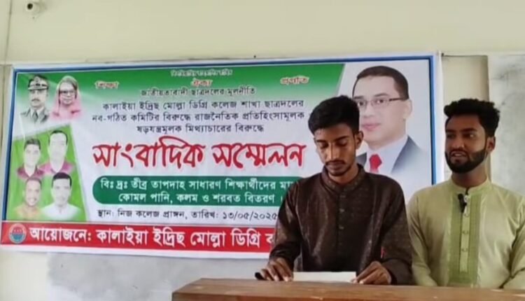 মঙ্গলবার বেলা ১১টার দিকে ইদ্রিস মোল্লা ডিগ্রি কলেজে এ সংবাদ সম্মেলন অনুষ্ঠিত হয়। এতে লিখিত বক্তব্য পাঠ করেন কলেজ ছাত্রদলের সাধারণ সম্পাদক মো. জিসান মাহমুদ।
