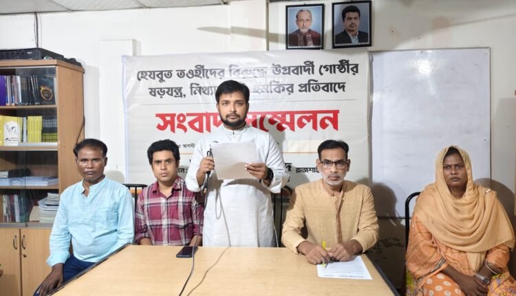 রাজশাহীতে একটি চিহ্নিত উগ্রবাদী গোষ্ঠীর ক্রমাগত ষড়যন্ত্র, মিথ্যাচার ও প্রাণনাশের হুমকির প্রতিবাদে সংবাদ সম্মেলন করেছে অরাজনৈতিক আন্দোলন হেযবুত তওহীদ। সোমবার (২৫ আগস্ট) দুপুর ১২টায় সংগঠনের রাজশাহী জেলা কার্যালয়ে এই সংবাদ সম্মেলন অনুষ্ঠিত হয়। এতে লিখিত বক্তব্য পাঠ করেন হেযবুত তওহীদের রাজশাহী জেলা সভাপতি আরিফুজ্জামান গালিব।