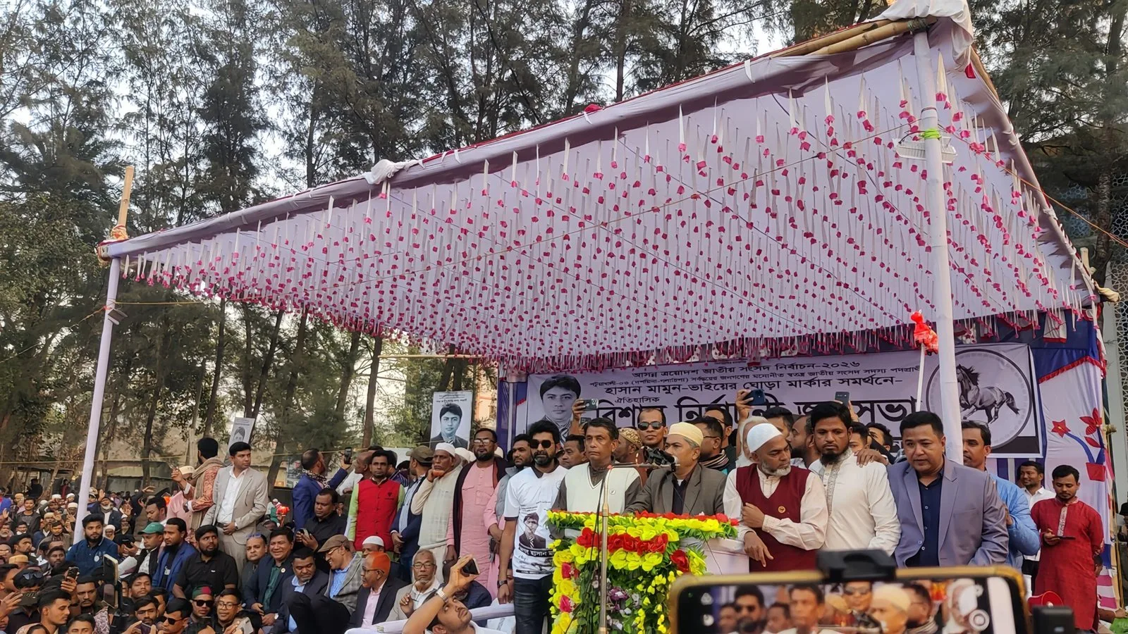 জনসভায় প্রধান অতিথির বক্তব্যে স্বতন্ত্র প্রার্থী হাসান মামুন বলেন, “হিন্দু-মুসলিম নির্বিশেষে, আওয়ামী লীগ-বিএনপি ও জামায়াত—সবাই আজ এক জোটে ঐক্যবদ্ধ হয়েছে। এই ঐক্যের প্রতীক ঘোড়া মার্কা। উন্নয়ন ও ন্যায়বিচারের স্বার্থে সবাই ঘোড়া মার্কায় ভোট দেবেন।”